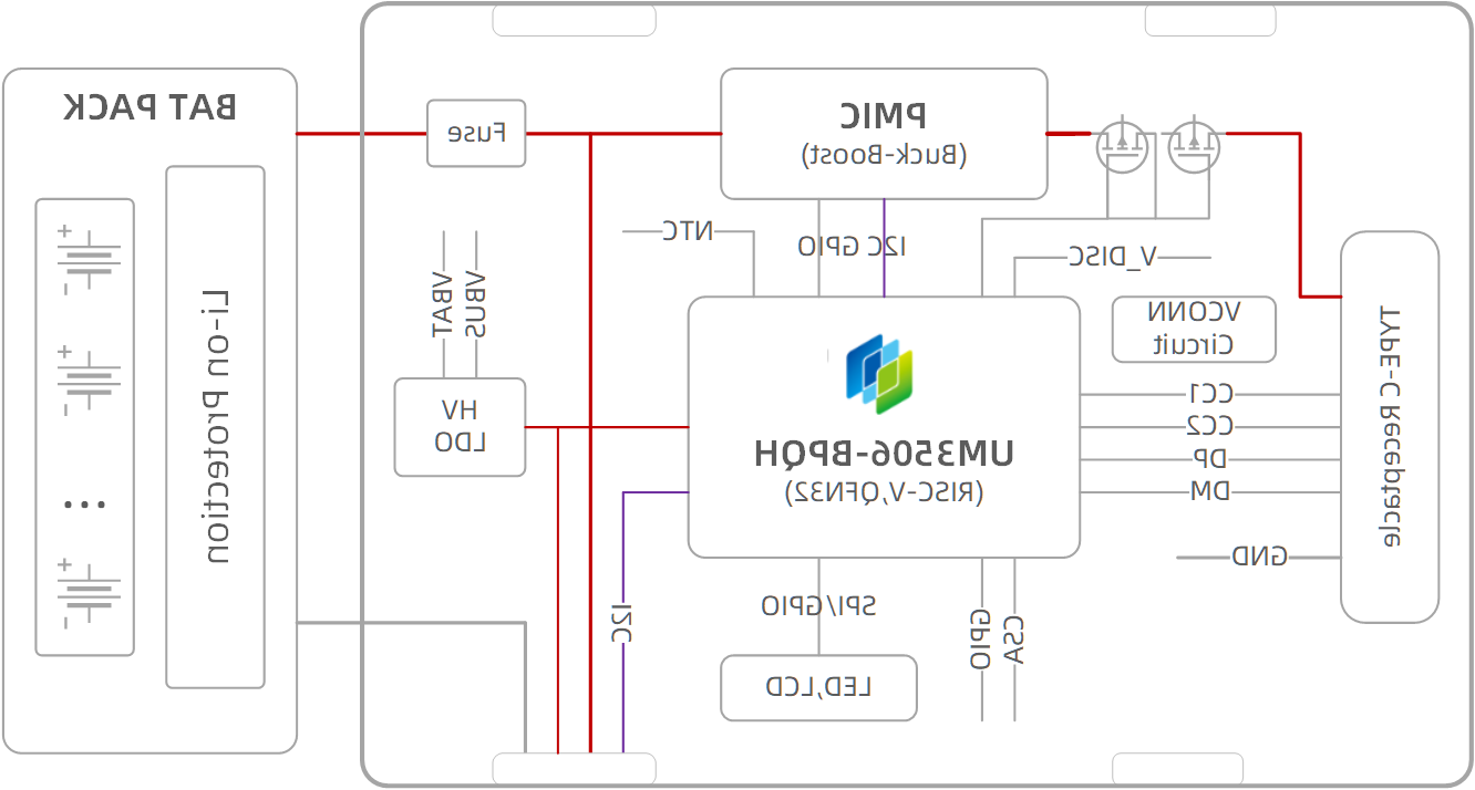 32位RISC-V内核,最高主频33MHz 8KB SRAM,256KBFlash Type-C R1.4, PDR3.0/3.1 规格(TID: 2465),支持标准持续升级 支持全功能的SRC/SNK/DRP模式,可配置的CS和Rd 支持VBUS DISCHARG,DEAD BATTERY,PPS (Programming power supply),FRS(Fast role swap)